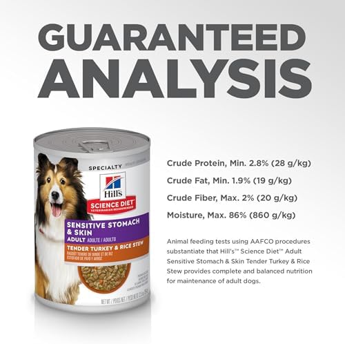 Specification: Hill’s Science Diet Adult 1-6 Sensitive Stomach & Skin Wet Dog Food, Turkey & Rice Stew, 12.5 oz. Cans, 12-Pack Pet Supplies: